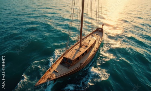 sailboat, wooden boat, sunset, ocean, water, nautical, serene, tranquil, marin, adventure, yachting, seascape, sailing, travel, horizon, summer, coast, blue, nature, landscape, freedom, exploration, vacation, relaxation, closeup, maritime, sky, beauty, sunlight, peaceful, outdoors, scenery, classic, style, heritage, craftsmanship, mediterranean, island, ocean view, clearwater, fall, skyline, fishing, calm