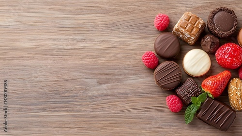 table, chocolate, strawberry, red, wooden, assortment, dessert, colourful, variety, sweet, tasty, sugary, delectable, delicious, mouth-watering, indulgent, snack, candy, sweet, epicure, edible, food, eating, fresh, juicy, deliciously, aesthetic