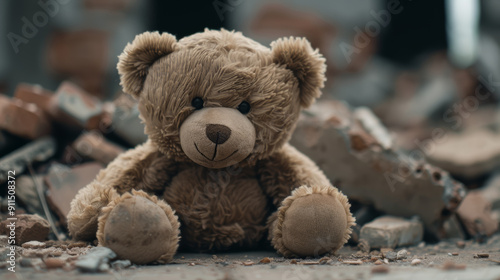 teddy bear, crisis, catastrophy, bear, debris, destruction, disaster, aftermath, devastation, wreckage, broken, lost, abandoned, ruin, forgotten, day, childhood, innocence, hope, earthquake, despair, sympathy, cataclysm, grief, grieved, pain, trauma, fragility, vulnerability, banner, copy space, resilience, humanity, empathy, compassion, love, comfort, solace, memory, nostalgia, past, present, future, time, place, war, fire, flood, natural