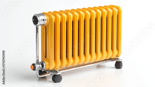 yellow, red, vintage, style, radiator, standing, against, plain, background