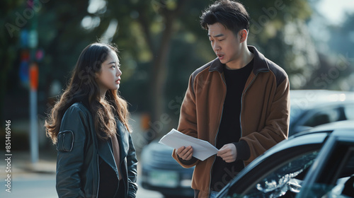woman, asian, standing, talking, accident, car, crash, highway, slippery, road, drunk, driving, insurance, agent, photo, people, fun, adult, adults only, friendship, lifestyle, relaxation, bonding, woman, happiness, avocation, enjoyment, female, color image, togetherness, young adult, real people, beautiful woman, drinking, cheerful, outdoors, copy space, modern, city life, missy