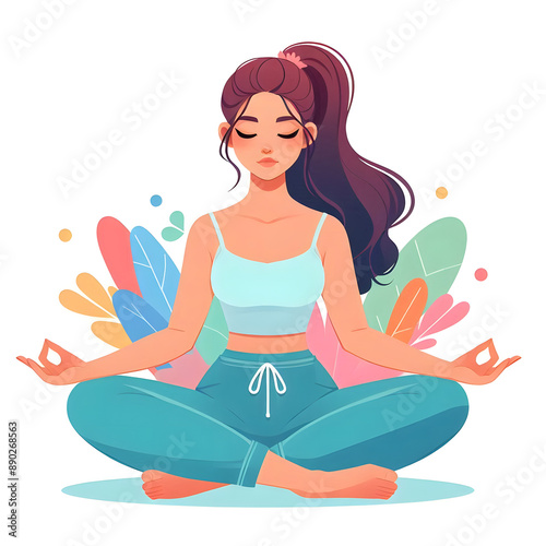 A young beautiful girl sitting in the lotus position, isolated on a white background, Flat vector Illustration