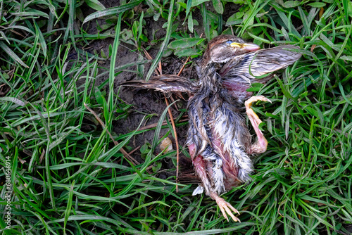 bird, grass, ground, wet, feather, twisted, wing, beak, eye, green, watered, young, dead, body, nature, death, wildlife, grassy, flora, fauna, avian, winged, feathered, plumage, flightless, lifeless, carcase, tragedy, life, cycle, chick, sparrow, animal, lying, end, down, emergency, die, paw, disease, broken, pet, mortal, accident victim, deadly, leaf, small, animal themes
