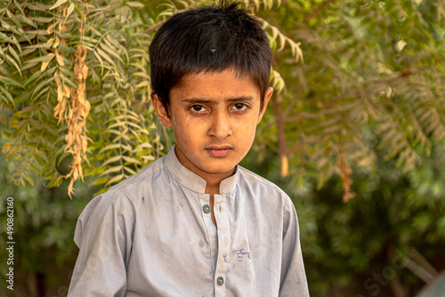 A Young boy and children in the refugee camp, sad boy face expressions helpless eyes