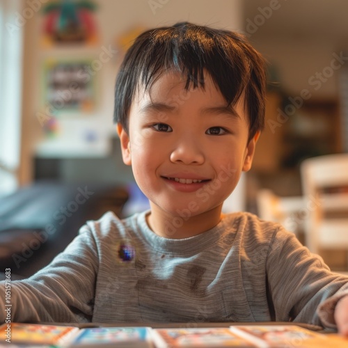 young, boy, smiling, sitting, table, deck, card, happiness, playfulness, enjoying, concept, engaging, little, happy, fun, game, person, children, children, education, cute, childhood, room, home, portrait, beautiful, school, toddler, cheerful, adorable, play, activity, caucasian, face, learning
