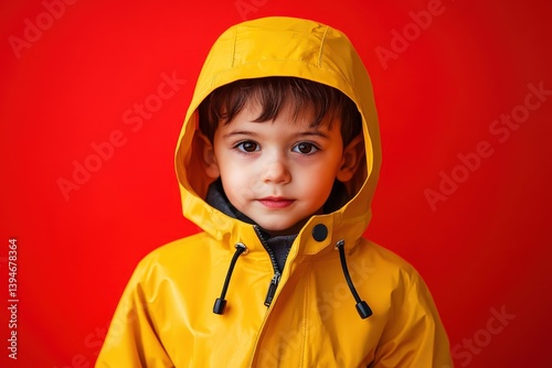 children, portrait, yellow, raincoat, hood, face, eye, expression, smiling, red, background, weather, waterproof, protection, apparel, clothing, casual attire, happy, childhood, boy, toddler, cute, bright, colourful, front, view, head, shoulder, hair, skin, outdoors, day, light, simple, serene, calm, looking, innocent, studio, pose, photograph, close, cheerful, little, person, warm, hope, safe