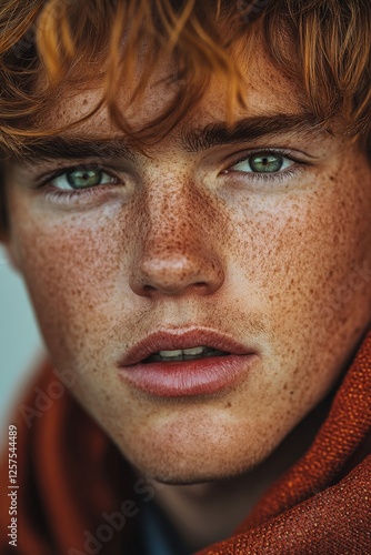 A young man with freckles on his face and green eyes