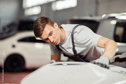 car, maintenance, mechanic, auto, service, garage, repair, vehicle, automobile, inspection, automotive, workshop, men at work, repairman, work, station, motor, shop, man, technician, fix, check, part, transportation, job, mechanical, industry, hood, checking, tool, people, person, background, male, hand, transport, diagnosis, young, level, professional, occupation, safety, paint, painter, restoration