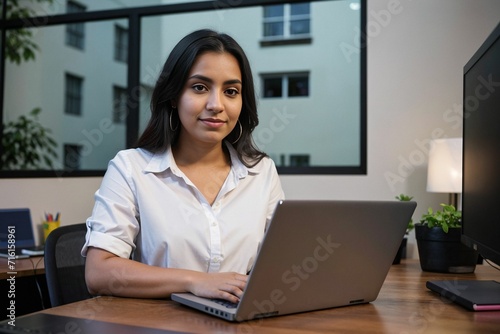 a young professional worker at an office working on laptop as a graphic designer, programmer or developer