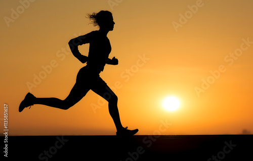 A young woman is exercising by running, with a slender and healthy figure, reflecting a moment of elegance and strength.