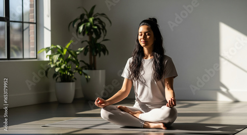 meditation, yoga, woman, indoor, studio, peaceful, serene, calm, wellness, mindful, tranquil, relaxation, health, spirituality, zen, lifestyle, person, natural light, fitness, inner peace, well-being, healthy lifestyle, healthy living, peacefulness, mind, body, soul, home, spiritual, sharpened