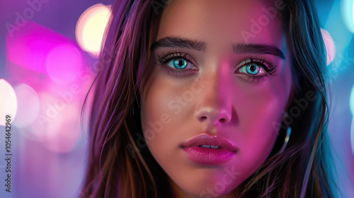 young, woman, pose, city, night, neon, light, bright, glow, style, dress, vibe, urban, scene, cool, bold, fun, art, view, street, sleek, charme, shine, youth, fresh, look, flair, mood, spirit, stylish, theme, hip, chic, form, face, dusk, shot