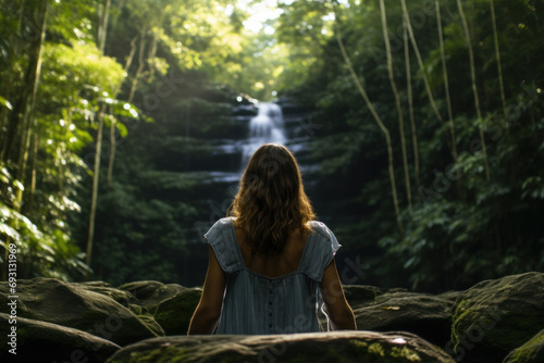 healthy, hiking, wearing, clothes, travel, happily, natural, waterfall, forest, experiencing, relaxed, take, breath, fresh, air, traveler, feeling, serenity, lifestyle, one person, photo, people, nature, calmness, enjoyment, freedom, relaxation, vacation, holiday maker, summer, well-being, rainforest, backpack, happiness, timberland, resting, meditating, woman, female, a, young, casual attire, woman, eye, jungle, trekking, girl, lady, person