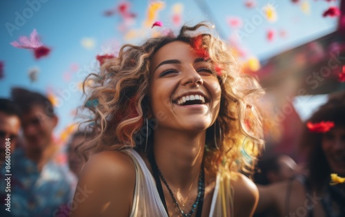 woman, young, happy, festival, music, crowd, colourful, atmosphere, laughing, enjoying, celebration, event, summer, fun, party, concert, entertainment, performance, people, dancing, live, bright, joy, carefree, spirit, smile, happiness, good, vibe, time, lifestyle