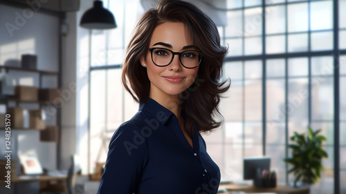 a young woman with wavy blonde hair, standing in a brightly lit office hallway,