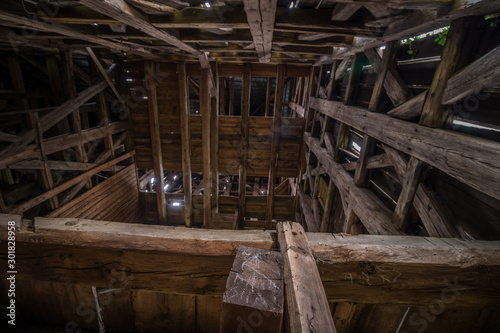 dark, abandoned, architecture, brick, brown, building, catholic, church, deserted, exploration, indoor, inside, interior, old, region, religion, saint, travel, urban, village, wood, wooden