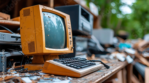 technology, nostalgia, yard, photo, innovation, scrap, vintage, decay, electronic, old, design, memory, history, clutter, creative, space, aesthetic, visual, scene, exploration, item, exposure, subject, composition, mood, contrast, atmosphere, perspective, insight, rustic, vibrant, storytelling, charme, character, collection, heritage, unique, display, condition, rugged, quality, object, culture, captivating, life events, documentation, iconic, classic, sensory