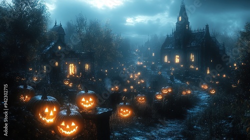 halloween, night, silhouette, jack-o-lantern, moon, autumn, bat, concept, castle, cemetery, dark, skittish, sky, evil, horror, cemetery, pumpkin, creepy, grave, moonlight, mystery, gothic, fog, scarey, october, background, holiday, forest, light, house, tree, night time, mysterious, country, daemon, light bulb, ghost, fable, historical building, twilight, poster, wood, fear, fall, glowing, window, blue, monster