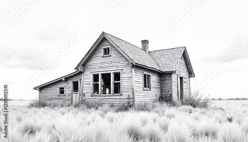 Abandoned wooden house surrounded by tall grass, eerie solitude
