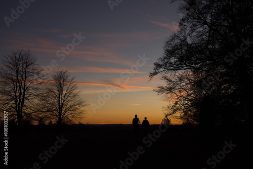 sunset, sunset, heaven, sun, tree, nature, silhouette, countryside, dusk, evening, orange, red, light, pretty, blue