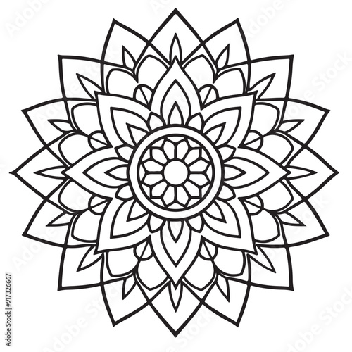 abstract wild Mandela design pg, adult anti-stress coloring page in line art, floral pattern coloring sheet.