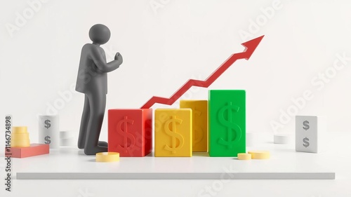Abstract 3D illustration depicting a concept of Gabon's economic collapse, with cubes representing financial decline, crisis, and downgrade, Gabon, increasing values