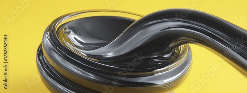 Abstract 3D Render: Black Liquid in Glass on Yellow Background - Aerial View