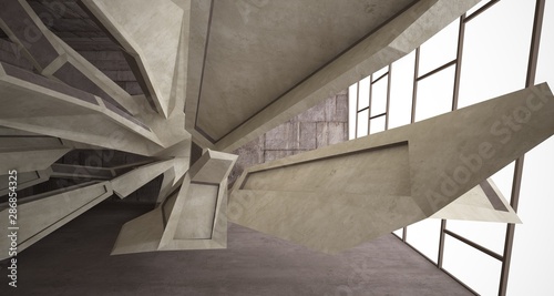 Abstract architectural brown and beige concrete interior of a minimalist house. 3D illustration and rendering