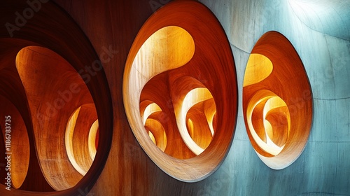 architecture, abstract, curve, light, warm, orange, brown, concrete, design, interior, structure, pattern, texture, modern, contemporary, building, wall, shape, circle, oval, shadow, illumination, line, depth, perspective, space, background, artistic, aesthetic, style, image, photo, visual, art, graphic, element, form, contrast