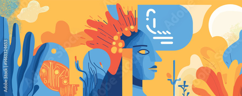 abstract art, human, profile, surreal, colourful, vibrant, design, modern, abstract, creative, expression, shape, yellow, orange, artistic, digital, visual, imaginative, illustration, concept, innovative, thought provoking, fantasy, contemporary, interpretation, unique, pattern, expressive, bold, striking, head, eye, mind, metaphor, dreamlike, artful, composition, inspiration, bright, texture, symbolic, visionary, dynamic, aesthetic