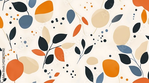 abstract, autumn, leaf, pattern, design, background, texture, beige, orange, blue, black, grey, teal, cream, shape, dot, spot, minimalist, modern, contemporary, style, illustration, artwork, graphic, art, floral, botanical, nature, simple, elegant, subtile, muted, calming, peaceful, serene, organic, earthy, vibrant, warm, cool, trendy, fashion, textile, wallpaper, print