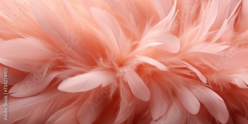 Abstract background from feathers in peach color. Color of the year 2024. Generative AI