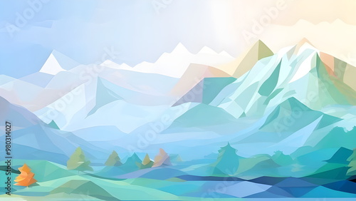 mountain, landscape, sky, vector, polygon, ice, cold, nature, blue, alps, travel, art