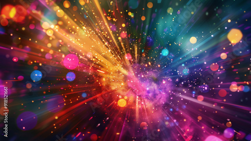 abstract, background, colourful, light, glow, particle, sparkle, glistering, shine, bokeh, blur, vibrant, bright, radiant, dazzling, aglow, festive, celebration, party, energy, magic, cosmic, galaxy, nebula, stardust, aethereal, dreamy, fantasy, dynamic, motion, explosion, burst, star, night, sky, dark, texture, pattern, design, digital, graphic, art