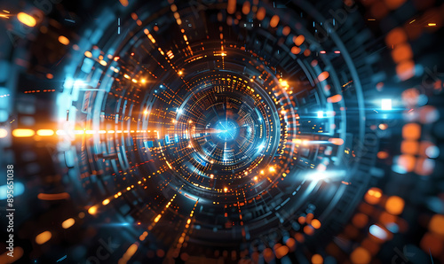 light, circle, tunnel, concept, technology, fractal, pattern, futuristic, energy, design, space, art, tech, science, dynamic, digital, illustration