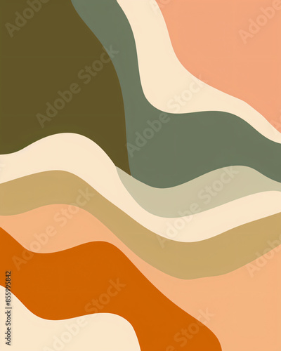 Abstract background with wavy shapes, vector illustration in the style of retro style, peach and green color palette