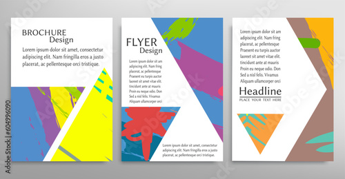 Abstract backgrouns set, grunge texture. Minimalistic art, brush strokes style. Design for card, brochure, banner idea, book cover, booklet print, flyer sheet a4. Collage page, web header template.