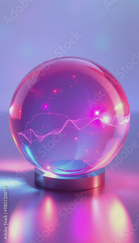 Abstract ball sphere planet iridescent energy transparent glass magic with energy waves in the core abstract background, photo, with white tones