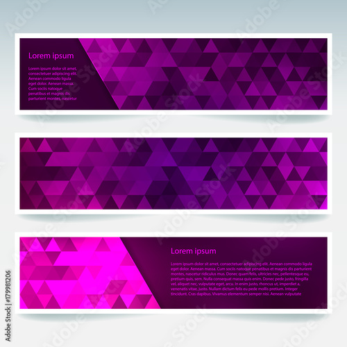 Abstract banner with business design templates. Set of Banners with polygonal mosaic backgrounds. Geometric triangular vector illustration. Pink, purple colors.