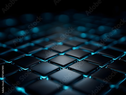 Abstract Black and Blue Square Tiles with Reflection and Glow Effects