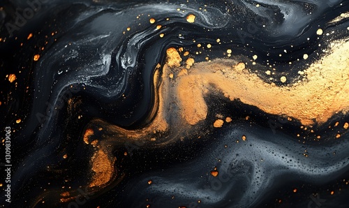 Abstract Black and Gold Fluid Art with Glittering Metallic Particles