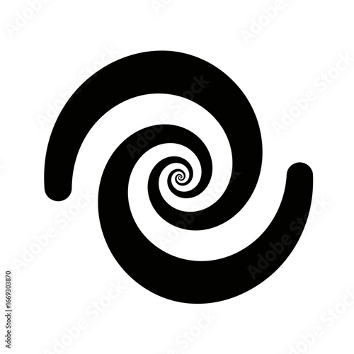 Abstract black and white hypnotic double spiral design creating an infinite recursive optical illusion. Minimalist geometric vector graphic representing eternity and motion