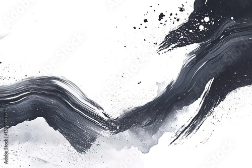 Abstract Black Ink Wash Painting, Dynamic Brushstrokes, White Background, Modern Art