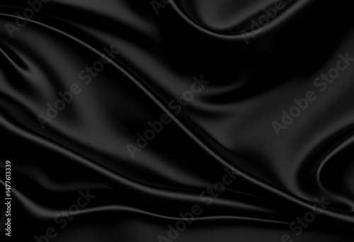 Abstract black silk wave, luxurious, trendy background with ample copy space for design, ripple, silk