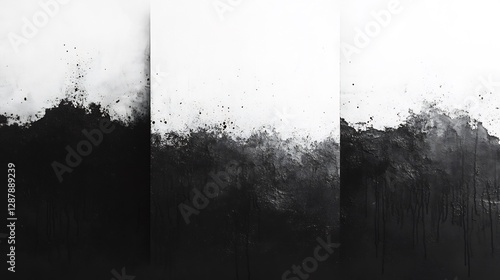 Abstract Black White Triptych Dramatic Grayscale Texture. AI Generated