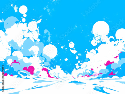 abstract, background, illustration, digital artwork, bubble, landscape, blue, white, pink, artistic, design, texture, pattern, vibrant, colourful, modern, graphic, art, wallpaper, visual, creative, fantasy, whimsical, playful, energetic, dynamic, style, composition, shape, circle, dot, splash, paint, sky, cloud, scene, image, artwork, picture, aesthetic, pretty, cool