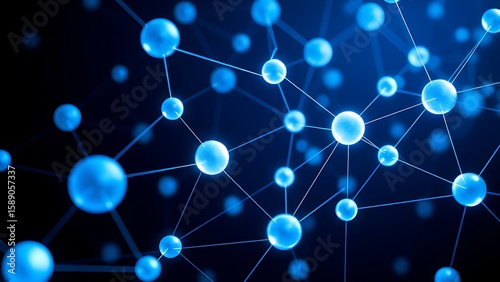 Abstract blue and white interconnected spheres with glowing nodes, symbolizing a digital network on a dark background.