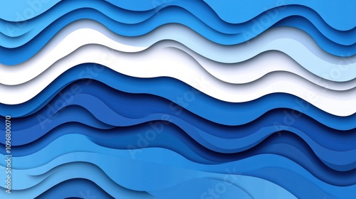 wave, ocean, water, blue, white, abstract, background, texture, pattern, design, art, graphic, illustration, paper, cut, layered, ripple, curve, undulation, flow, smooth, seamless, style, modern, contemporary, vibrant, colours, bright, clean, simple, elegant, image, visual, creativity, element, surface, line, shape, form