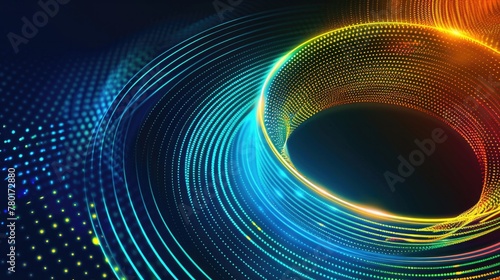 Abstract blue background with interweaving of colored dots and lines, Wave of dots and weave lines.