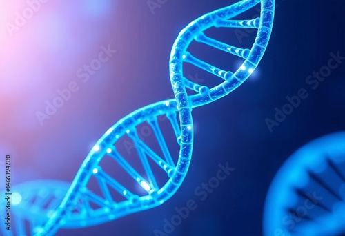 Abstract blue DNA helix, glowing strands, biotechnology concept, code, genome